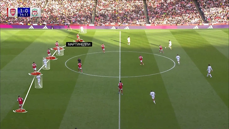 Габриэль Мартинелли – главный в атаке «Арсенала» по заточенности на индивидуальные действия. Артета грамотно максимизирует его качества. Например, Томиясу не играл ложного (как Зинченко), а оставался при розыгрышах третьим центральным. Это сделало фланг менее подвижным и более предсказуемым, но в контексте конкретного матча сыграло в пользу «Арсенала» – количество очных эпизодов Мартинелли против правого защитника «Ливерпуля» возросло. Получив комфортные условия, бразилец не подвел тренера.