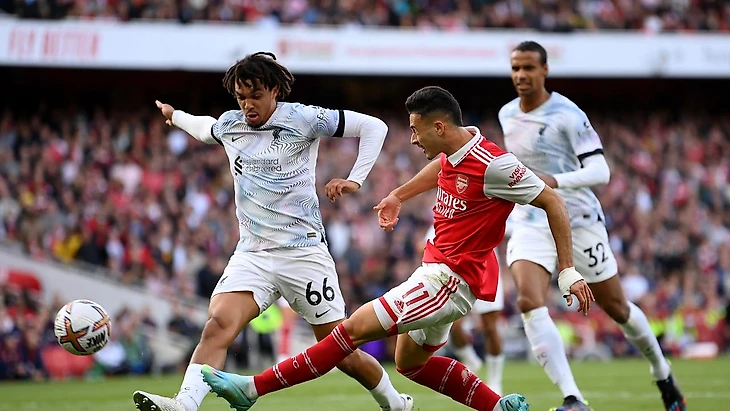 Микель Артета, как и его оппонент, выставил самый мощный из доступных ему составов на данный момент и фанаты были вправе ожидать неплохого зрелища на поле «Эмирейтс». Так оно и вышло. Первый тайм (с учетом добавленного времени) вместил в себя три гола. Первым начал зажигать «Арсенал» уже на первой минуте. Мартин Эдегор разрезал передачей оборону мерсисайдцев и Габриэл Мартинелли вколотил мяч в ворота Алиссона.
