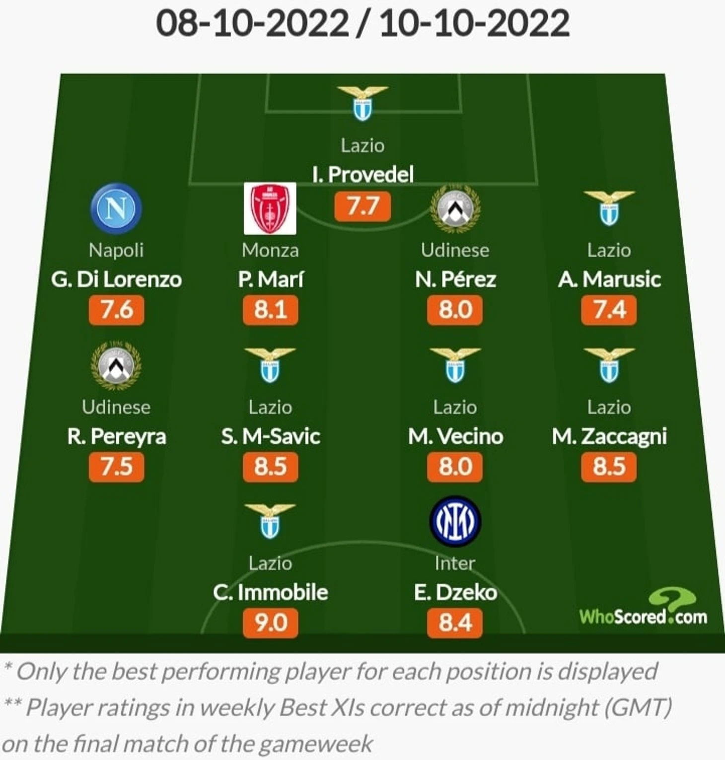 Шесть игроков «Лацио» в команде недели Серии А🔥🔥🔥