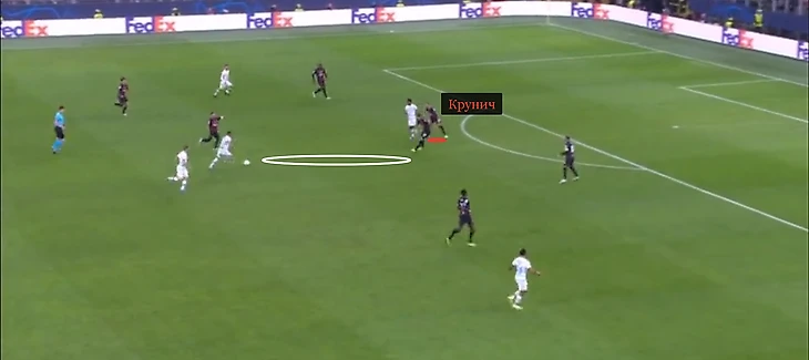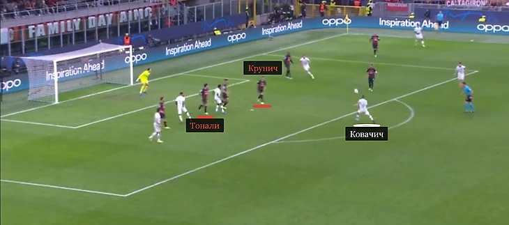 Лучший пример – второй гол «Челси». В рамках эпизода Раде Крунич опустился в линию защиты. «Милану» не хватило хавбека, чтобы прервать розыгрыш соперника перед штрафной.