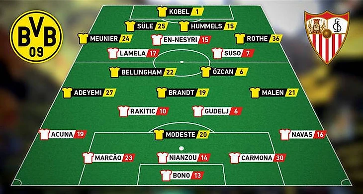 В эти минуты «Боруссии» не хватало скорости и глубины. А это означало, что «Севилья» не испытывала никаких трудностей при игре в обороне. Только после пропущенного гола дортмундцы начали что-то там предпринимать. Что было явно недостаточно для того, чтобы создавать моменты у ворот испанцев. Но на 24-й минуте Адейеми перехватил неаккуратную передачу Маркана, но его пас Модесту на пустые ворота перехватил Буну. А ведь правый полузащитник мог спокойно бежать на ворота или даже бить по ним, поскольку большая часть из них была пустыми. А на 35-й минуте первая по-настоящему осмысленная и быстрая атака хозяев завершилась голом. Беллингем отправил в прорыв по правому полуфлангу Менье, который после короткой паузы прострелил в штрафную, где подоспевший Беллингем в борьбе с Ньянзу с 8 метров с ходу пробил мимо голкипера Севильи. 1-1.