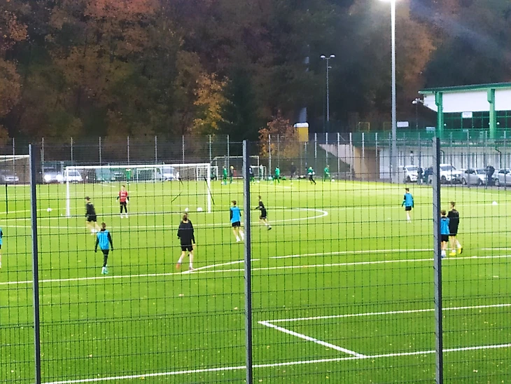 Но, все-таки перейдем к тому что мы увидели. 3 сентября 2021 года, мы на тренировке, Саше как вратарю, наверное чуть проще, чем полевому, потому что главная задача его - защитить рамку, но первый шок и удивление, которое мы испытали это интенсивность и темп занятия. Вот мы смотрим по телевизору европейский футбол или матчи еврокубков и поражаемся темпу игры, особенно на контрасте с российскими командами и возникает вопрос: почему так? Там что футболисты быстрее или мяч круглее? Первые ответы именно про интенсивность я начал получать здесь. Тренировка полтора часа, также как у нас было в Тюмени, НО!!! это полтора часа именно работы, сейчас вы поймете почему. Начало занятия, поле полностью готово и разделено на сектора работы. Никаких построений, никаких разминок (это игроки делают заранее), никаких свистков (за год с лишним, я здесь не видел свистка у тренеров). 16-00 первый сектор, работа, тренировка началась. Что дальше? Пауза на воду 1-2 раза за тренировку. Собирать, передвигать фишки и прочий материал - нет такого. Максимум - ворота подвинуть. То есть минимум пауз на дела, которые позволяли нам в Тюмени перевести дух или востановить силы. Но и это не главный ключ к привычке проводить тренировку в высоком темпе. Как я уже сказал, поле поделено на сектора, условно, четверть поля это лесенка и фишки, работа на физику, вторая четверть на маленькие воротики, уже работа с мячом и половина поля для игровых заданий. Играть на все поле во время тренировки даже у старших практически не принято. При переходе на игровые упражнения, то есть на вторую половину, начинается работа на ту самую интенссивность. Это игра с заданиями или без, не важно, но это 45 минут игры без пауз от слова совсем. Выглядит то действо следующим образом: нет аутов, угловых, штрафных и прочего, что сбивает темп, и да, игра идет либо на пол поля, либо вообще метров на 30, на стандартные ворота. На практике это выглядит так: множество мячей лежат в воротах и у тренеров по бокам, если мяч вышел, то он резко вводится вратарем, либо тренером. Никто не тратит время сбегать за мячом, установить его, спокойно ввести в игру, на что уходит время в обычной игре, когда остальные игроки шагом могут занять свои позиции и перевести дух. Тут мяч всегда в игре.