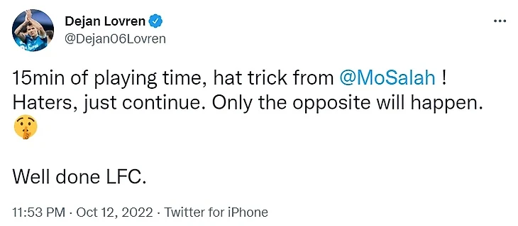 «15 минут игрового времени и хет-трик от Мо Салаха! Хейтеры, просто продолжайте, вы добьетесь обратного эффекта. Так держать, «Ливерпуль».