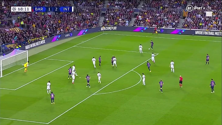 В первом тайме из этого рисунка игры «Барселона» извлекла больше: 64% владения, 15-3 по ударам (8-2 из штрафной). Несмотря на открытость хозяев, «Интер» кроме момента Джеко со стандарта и контратаки с ударом Дюмфриса ничего не создал.