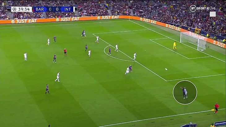 А Чалханоглу после того, как перехватил этот пас сделал прекрасный заброс на Лаутаро. Здесь можно говорить о неуверенной игре Эрика Гарсии, но ситуация была слишком неудобной для него: