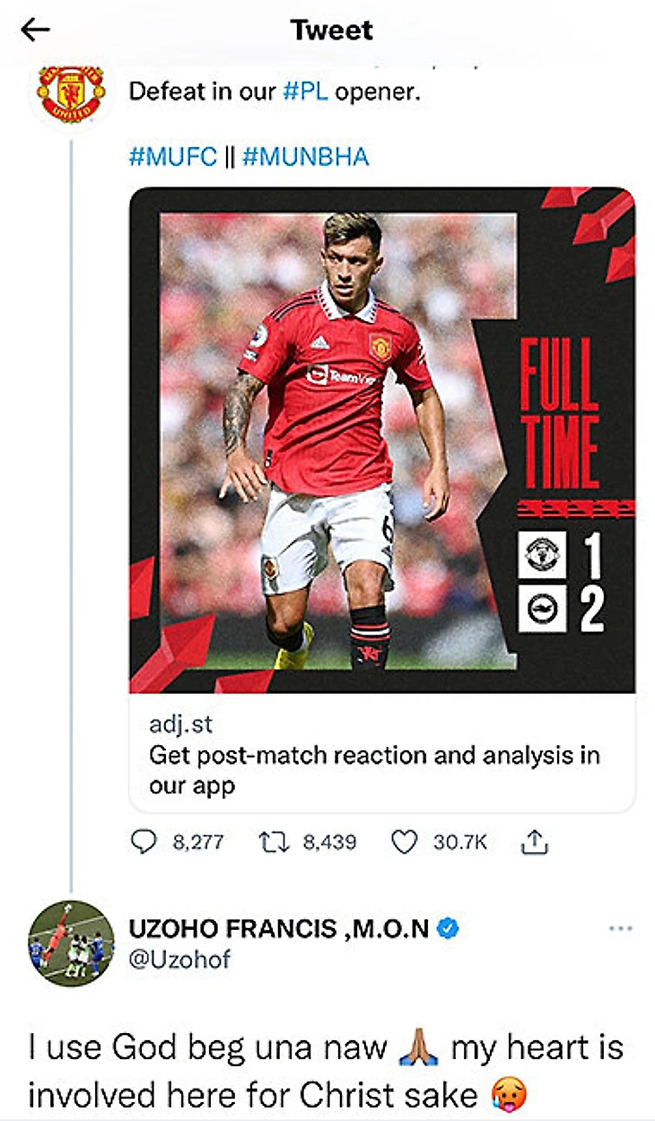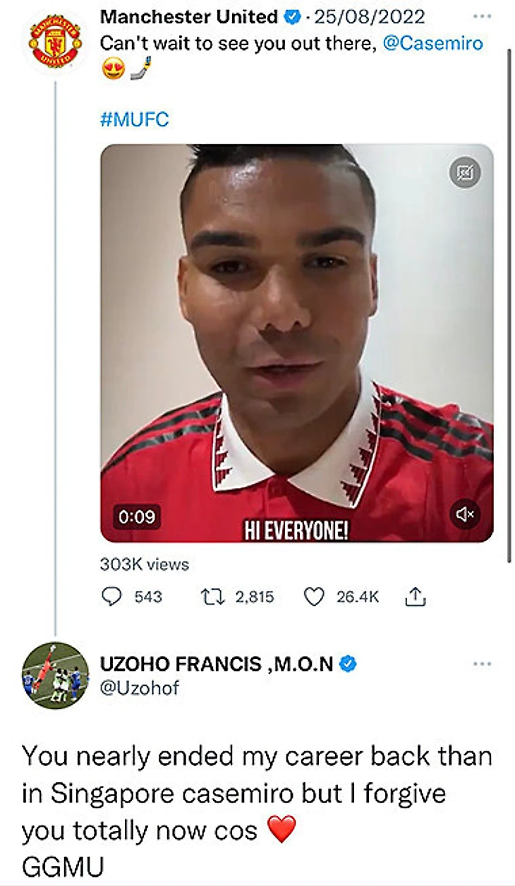 Узохо – ну очень страстный фанат «МЮ». В его твиттере можно найти много реплик, связанных с клубом из Манчестера. Когда в клуб пришел Каземиро, вратарь, обращаясь к бразильцу, писал: «Ты чуть не закончил мою карьеру в Сингапуре, но сейчас я тебя прощаю». Что произошло между Фрэнсисом и Каземиро в Сингапуре – непонятно.