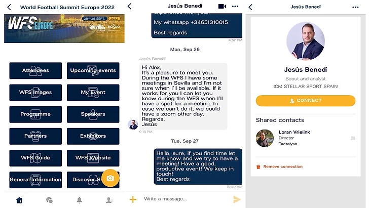 Помимо выступлений и стендов представителей футбольных компаний, WFS предоставил всем участникам специальное приложение на мобильные устройства, где каждый имел доступ к программе мероприятий, списку всех участников саммита и мог связаться с интересующим его представителем, назначить встречу или пообщаться внутри приложения.