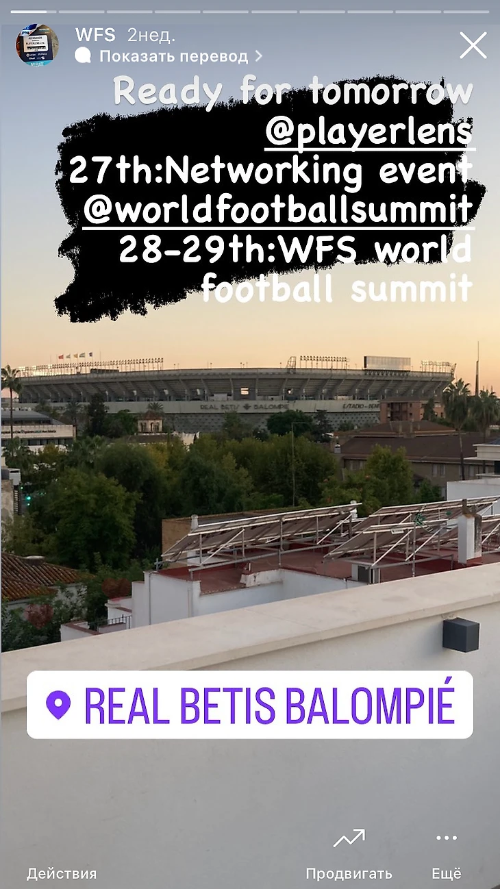 Наша цифровая, трансферная платформа PlayerLENS, где я работаю уже второй год и отвечаю за рынок СНГ и несколько других регионов, была официальным партнером данного мероприятия и для нас был выделен целый зал, где прошел ряд выступлений пользователей нашей платформы.Также, за день до WFS проходила нетворкинг встреча для наших клиентов с посещением матча Марокко - Парагвай на стадионе Бетиса "Бенито Вильямарин". Обо всем по порядку.
