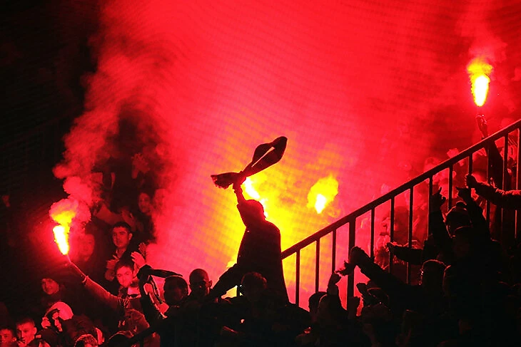 «Мы даже разговаривали с президентом Филатовым, говорили, что не понимаем этот переход, – рассказывает Иван из «Локо». – Фил только от нас узнал: «У вас, оказывается, недопонимание есть». То есть он не замечал того, что происходило, хотя в середине нулевых был забавный случай прямо на стадионе. Одно из дерби проходило в «Лужниках», группа ОМОНа сидела около трибуны «Торпедо». Они зажгли пару файеров, ОМОН их попинал. Потом на нашей стороне парни протащили противотанковую дымовую шашку, она громко рванула и завесила весь стадион дымом. ОМОН сразу перебежал к нам, и все повторилось уже около нашей трибуны. Странно было это не замечать».