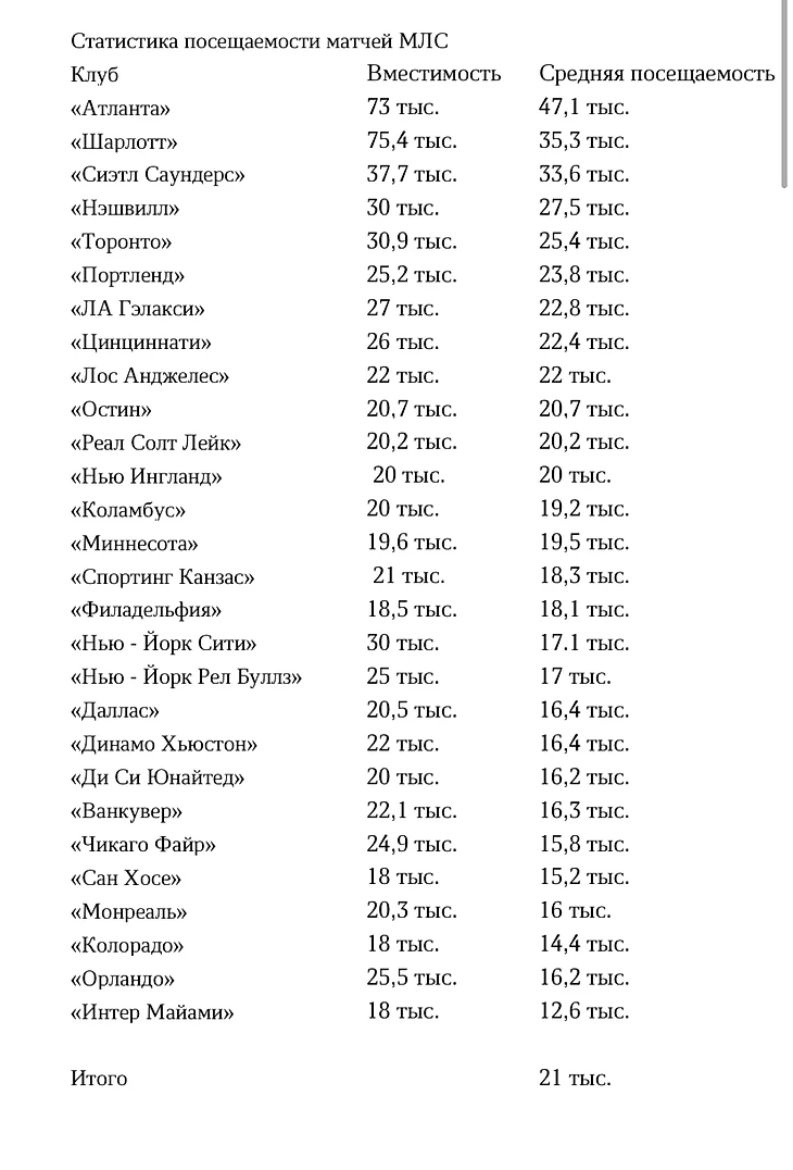 Статистика посещаемости МЛС на европейском уровне! А некоторые команды регулярно собирают полные трибуны