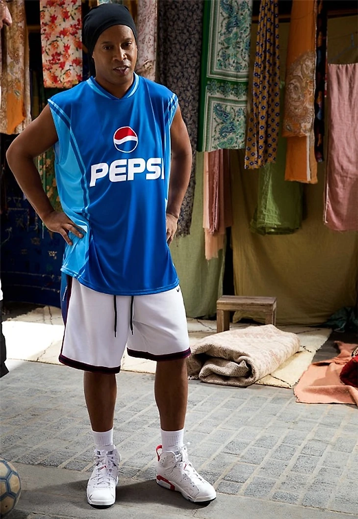 Роналдиньо, конечно, снимался в рекламе Pepsi уже тогда. Вот легендарный Pepsi Foot Battle (2004), по сюжету которого Рон, Тотти, Бекс и Роберто Карлос в образе римских гладиаторов спасают город от захватчиков. Враги хотели украсть все банки с «Пепси».