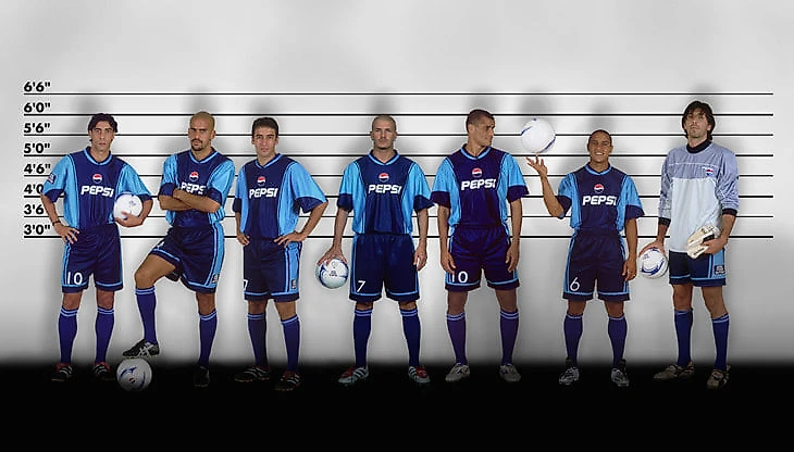 В 2002-м PepsiCo запустил масштабную маркетинговую кампанию со слоганом Dare for more (на русском рынке – «Решись на большее»). Под нее PepsiCo создал команду «Пепси», куда вошло несколько десятков футболистов: от топовых Бекса, Роберто Карлоса и Буффона до менее известного Диего Симеоне.