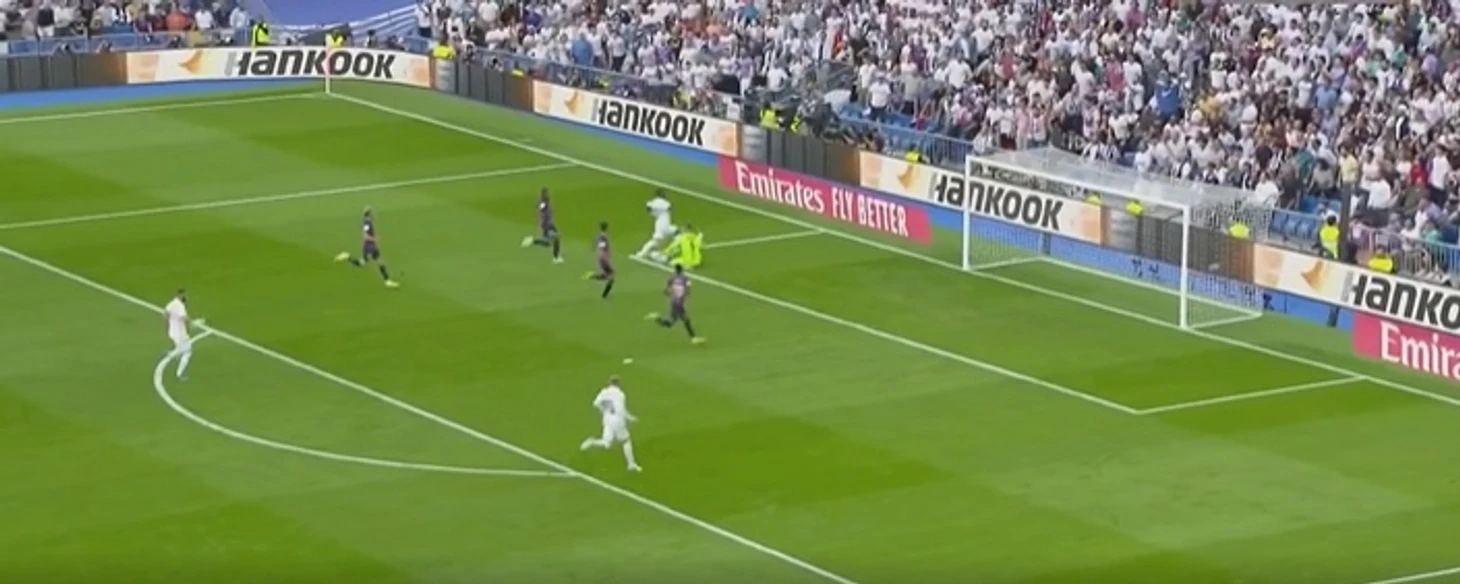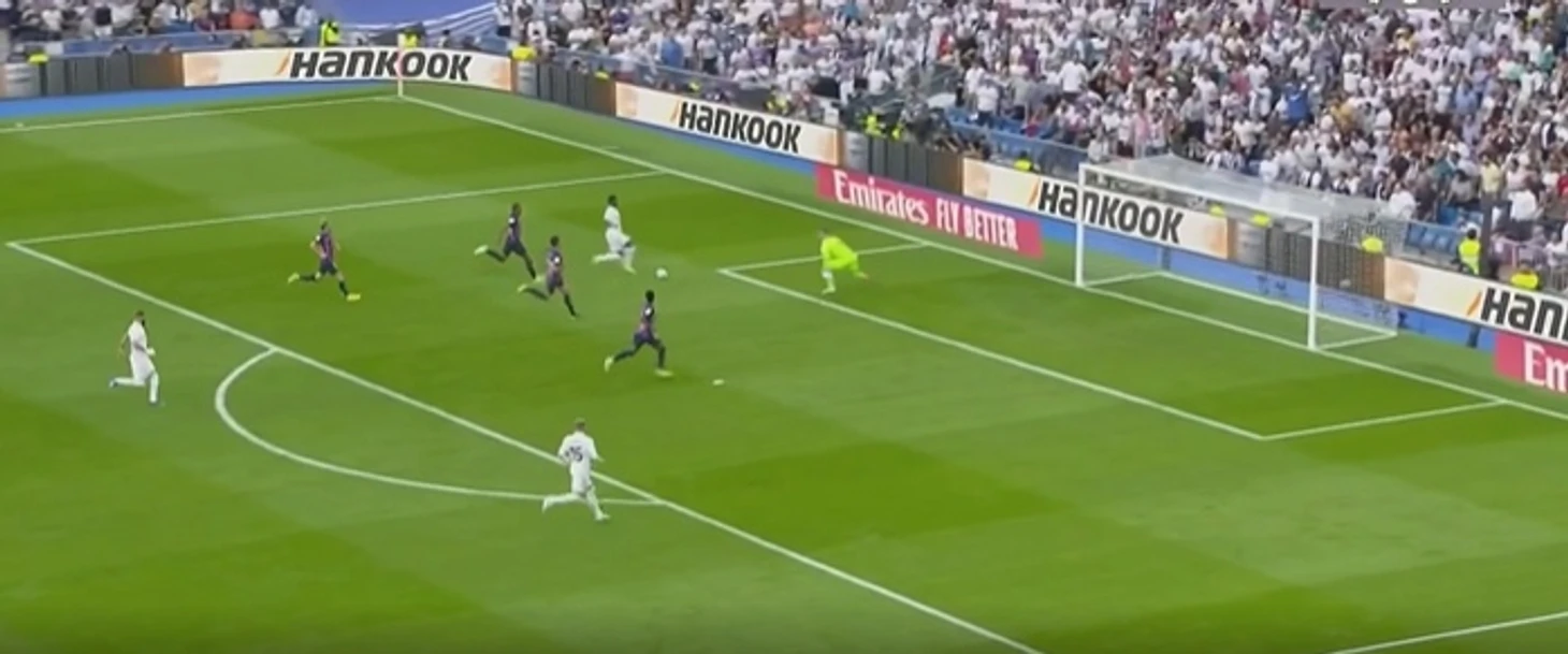 НА 12-й минуте Карим Бензема забил гол в ворота «Барсы». Тони Кроос сделал шикарный длинный пас на Винисиуса, который попытался пробить, но тер Стеген бросился навстречу мячу и успел остановить его рукой и коленом. Но тот отрикошетил и отправился прямо в ноги Бензема, который без раздумий отправил мяч в сетку.