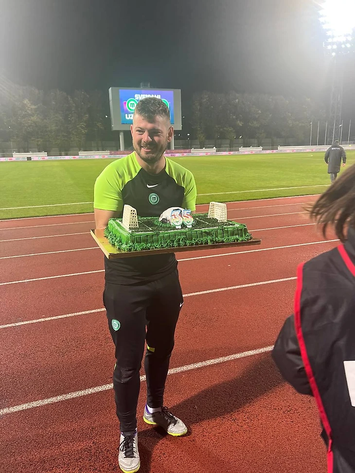 Не было предела для радости всех поклонников «Метты» и в частности Никиты Ковальчука. После вручения заветного трофея в руки победителей, футболистки «Метты» преподнесли своему главному тренеру праздничный подарок, относящийся не к Кубку Латвии, а исключительно к имениннику. Именно в этот день Картавому Нику исполнилось 35 лет! И он получил в свои руки торт в виде футбольного поля, ведь он так любит эту игру!