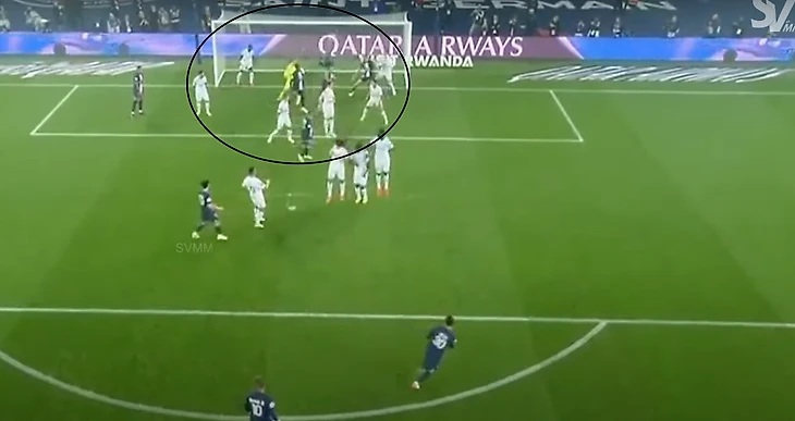 Обратите внимание на скопление игроков внутри вратарской зоны. Футболисты «Марселя», зная мастерство аргентинца, решили усложнить задачу Лионелю, расположившись на штангах и на пути мяча. Там же стали игроки «ПСЖ», чтобы помешать сопернику остановить удар Месси.