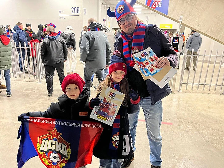 Правда, собрать все наклейки практически невозможно. До начала матча этому мешали очереди, а в перерыве все конструкции с активностями разобрали. Дмитрий с детьми Мирабеллой и Марком хотели собрать наклейки после 45-й минуты, но не получилось.