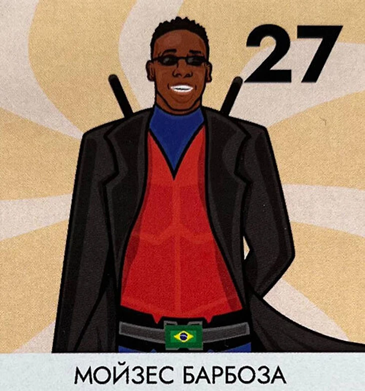 Некоторые футболисты в коллекции явно отсылают к известным супергероям. Во Владимире Федотове угадывается Чарльз Ксавье, лысый лидер и основатель Людей Икс, Карраскаль похож на Гамбита (его суперсила – меткость, рукопашный бой и ловкость), Обляков в оранжевых очках похож на Циклопа (супергерой, который выпускает лазерные лучи из глаз и умеет ими лечить), а Мойзез – на Блэйда (у него сверхчеловеческая сила и скорость, невосприимчивость к болезням и холодное оружие).
