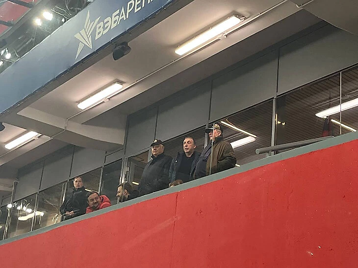 Настроение прямо перед дерби приятно-напряженное. Гимнастка и полковник Светлана Хоркина поправляет футболку с 19 номером (как у Зайнутдинова), ей наносить первый удар по мячу. На поле передают привет от баскетбольного ЦСКА девушки из группы поддержки. А в супервип-ложе как всегда гладковыбритый Евгений Гинер обсуждает дела с Сергеем Ивановым – и что-то показывает ему на телефоне. Председатель совета директоров ЦСКА Максим Орешкин – на ряд ниже.