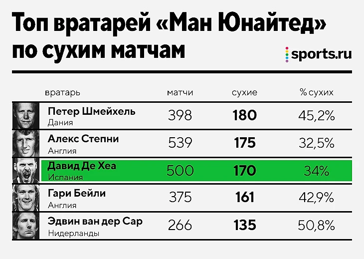 И еще: Степни и Де Хеа – единственные вратари, сыгравшие в «Юнайтед» 500+ матчей.