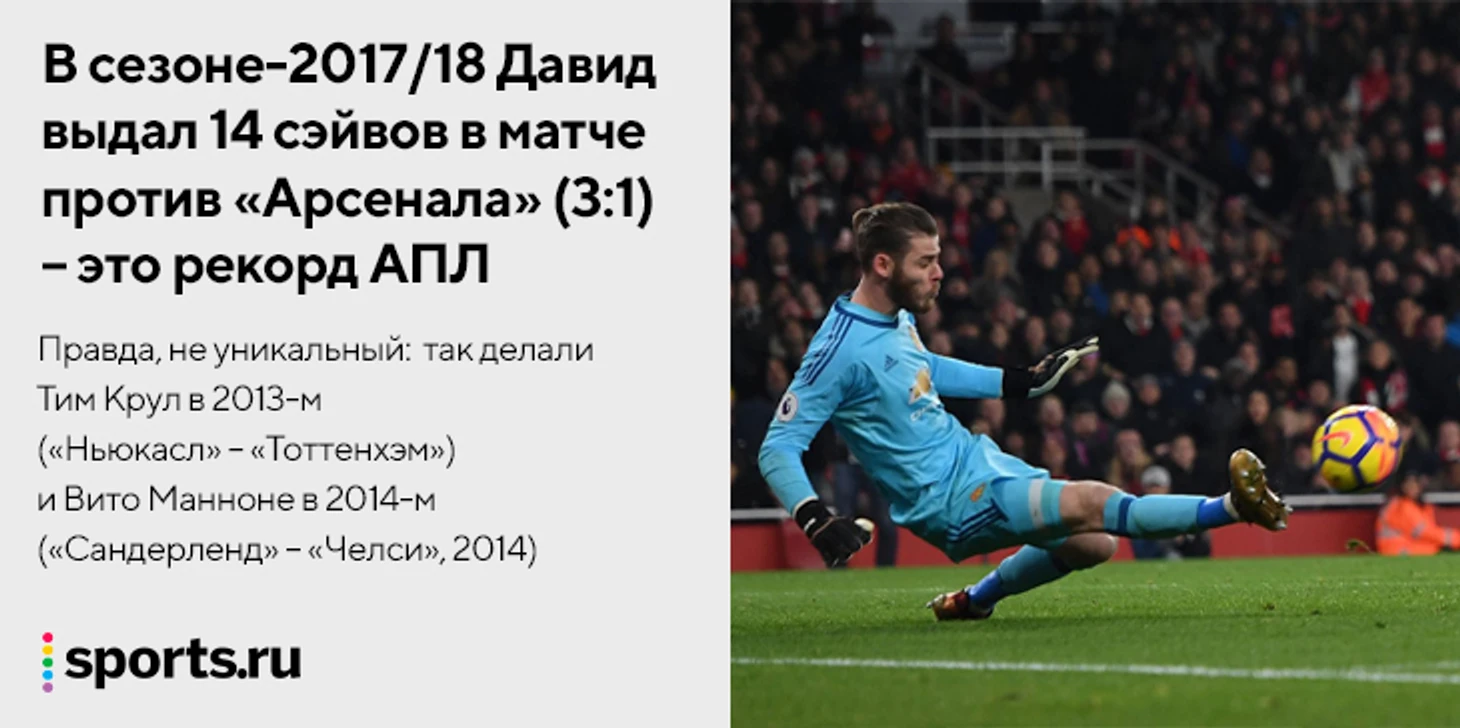 Арсен Венгер после матча сказал: «Загадка, как мы не забили еще, но Де Хеа был лучшим игроком матча с огромным отрывом». Ответ на загадку Венгера – Давид, который превратил созданные «Арсеналом» 4,24 xG (данные Understat) во всего один пропущенный.