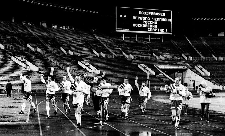 Золотые медали «Спартак» оформил 17 октября 1992-го на стадионе «Лужники» в московском дерби против «Локомотива». Борьбы на поле не получилось: Андрей Пятницкий, Виктор Онопко, Владимир Бесчастных и Дмитрий Радченко забили по мячу, только после Мухсин Мухамадиев ответил одним голом.