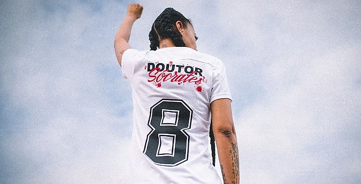 На спине восьмой номер и надпись «Доктор» – известное прозвище Сократеса, которое он заслужил за медицинское образование, политическую подкованность и стиль игры. Шрифт надписи напрямую отсылает к Коринтианской демократии – периода в истории «Коринтианса» с 1982 по 1984 год, когда все важные социальные вопросы решались равноправным голосованием. Голоса массажистов или физиотерапевтов равнялись голосу звездного игрока или представителя администрации клуба.