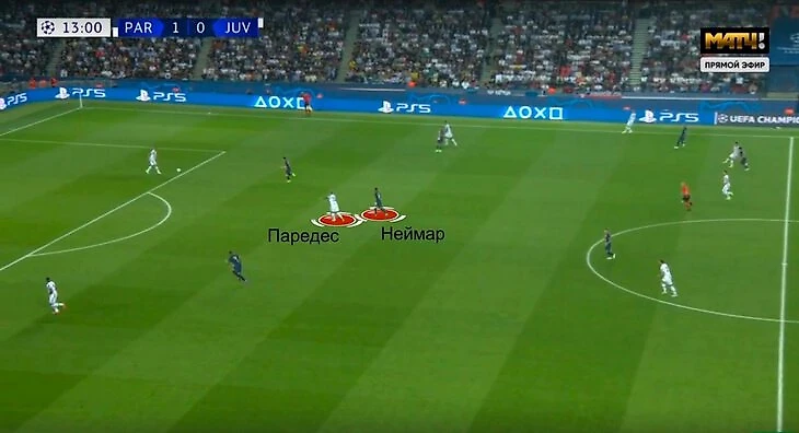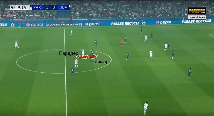 Когда «ПСЖ» откатывался назад, Неймар оказывался в центре между Мбаппе и Месси и опекал Паредеса.