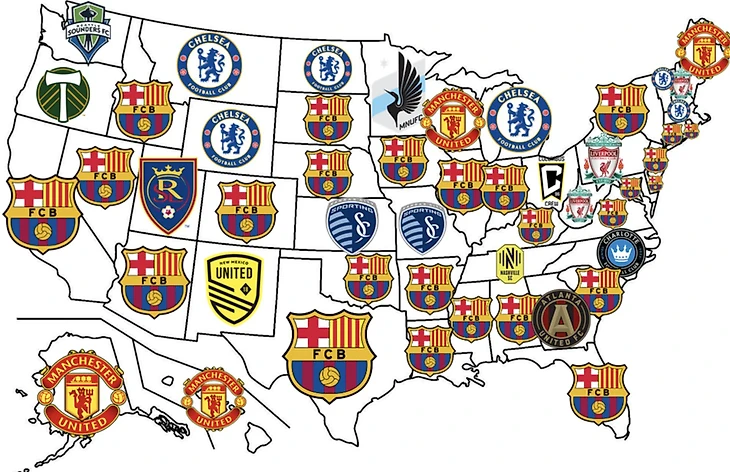Немало фанатов у «Челси» - клуба, одним из первых начавшего выставочные поездки в Северную Америку. «МЮ» и «Ливерпуль» тоже имеют немало поклонников, а вот «Реала» в лидерах нет ни в одном из штатов.