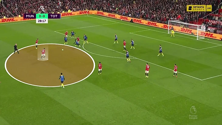 Тен Хаг еще более явно обернул эту особенность системы Конте против него. Получая пространство, игроки «МЮ» не стеснялись бить издали при любой возможности.