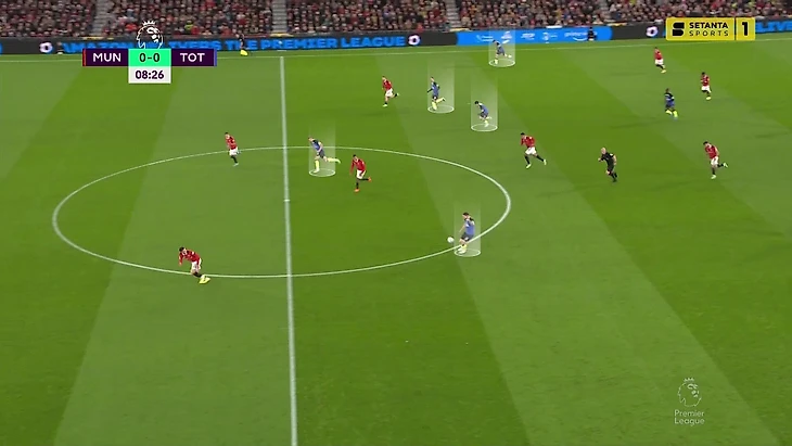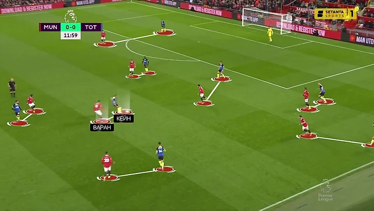 Вообще такая структура – прием Тен Хага на почти любой матч (в «Аяксе» было так же), но против «Тоттенхэма» эффект был особенно мощным, так как схемы удобно накладывались для такого давления. 4-2-3-1 (или даже 4-2-1-3) – это схема для зеркалки схемы 3-5-2. То есть персональная игра была естественной при таком наложении схем – не нужно было адаптировать формацию.
