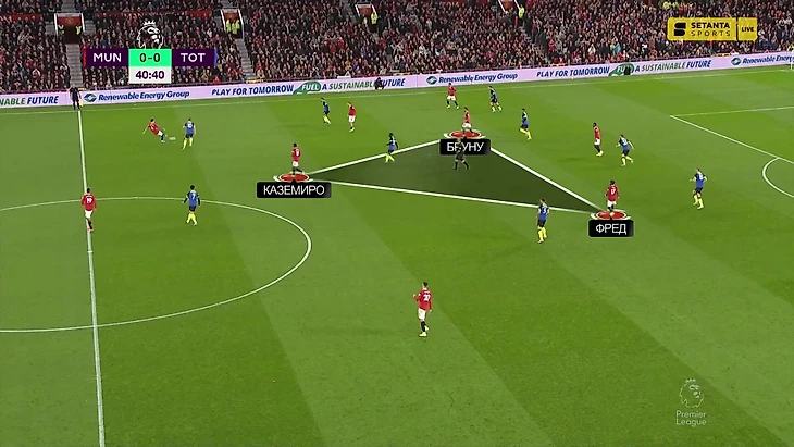 Элементы гибкости мы наблюдали и вчера. Треугольник центра поля разворачивался в разные стороны. Фред и Каземиро глубже, а Бруну как десятка: