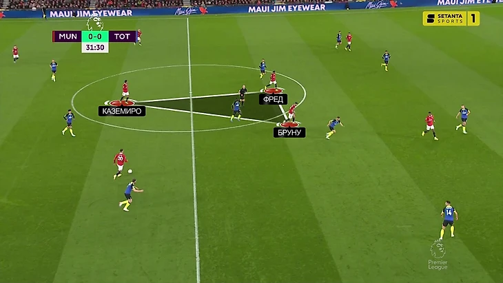 Только у Каземиро в этом матче была относительно фиксированная позиция, хотя даже это может меняться – против «Ньюкасла» порой Фред оставался глубже, а Каземиро делал рывки к штрафной. При должном уровне взаимопонимания это рождает интересные непредсказуемые конструкции. Между Фредом и Каземиро уже давно есть нужная связь, а Бруну хорошо вписывается из-за высочайшего интеллекта.