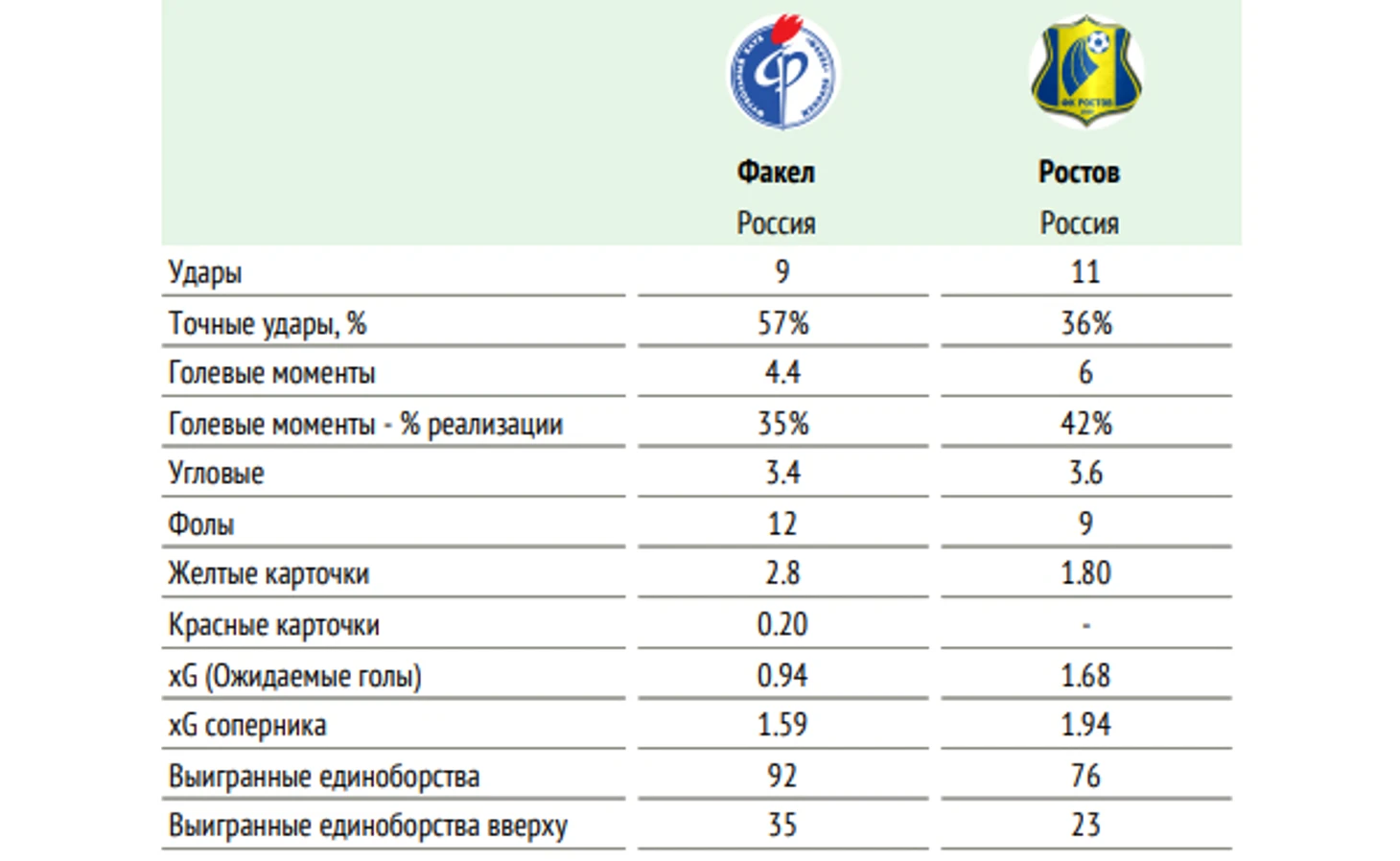 🕮 Факты: ◉ У «Факела» идёт серия из четырёх ничьих. Воронежская команда – самая миролюбивая в сезоне. Из 13 сыгранных матчей восемь она завершила мирными результатами. ◉ «Ростов» не играет вничью шесть туров (четыре победы и два поражения). ◉ «Факел» не проигрывает пять туров, но одержал в этих пяти поединках лишь одну победу. ◉ «Ростов» пять матчей подряд и забивает, и пропускает. ◉ 10 раз в чемпионате-2022/23 «Ростов» получил право на выполнение пенальти. Южане чаще всего бьют 11-метровые, опережая ближайших преследователей, ЦСКА и «Сочи», на три удара.
