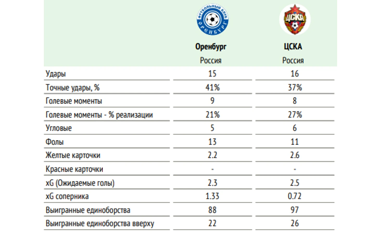 🕮 Факты: ◉ В трёх матчах против ЦСКА, состоявшихся в РПЛ на поле «Оренбурга», южноуральцы не забили ни одного мяча и потерпели три поражения. ◉ «Оренбург» - единственная команда нынешнего сезона, еще ни разу не сыгравшая вничью, а с учётом предыдущих сезонов, сыгранных в РПЛ, у южноуральцев лишь одна ничья в последних 24 матчах.