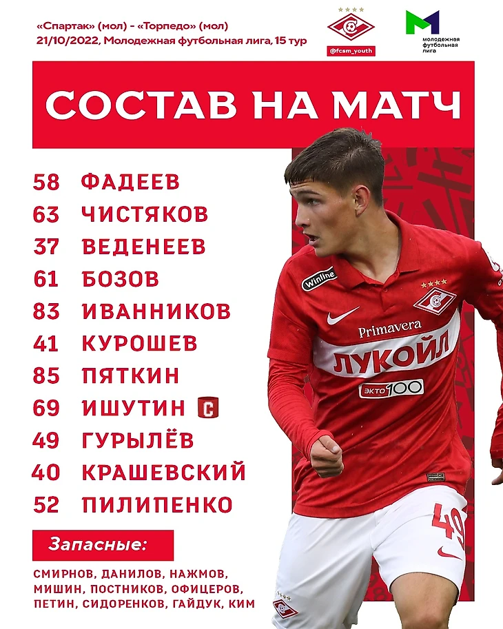 «Спартак» (мол.) — «Торпедо» (мол.) — 3:0 (3:0)