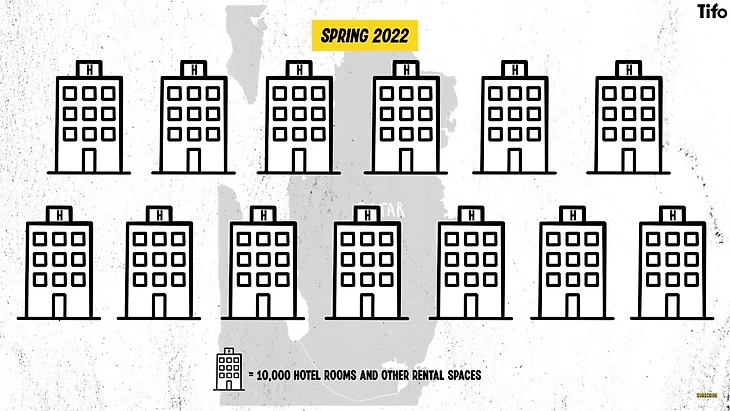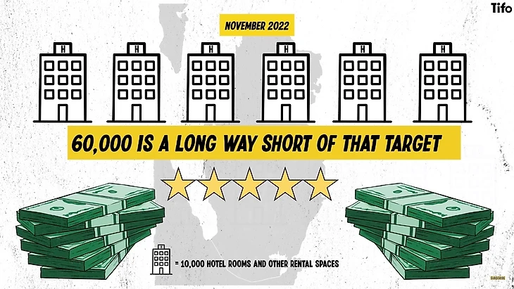 Тем не менее, цифры выглядят обманчиво. По оценкам организаторов, за первые две недели турнира со всеми 32 командами и их болельщиками в Катар прибудет приблизительно 559 000 посетителей. Пик спроса будет примерно 27 и 28 ноября, когда, как ожидается, 276 000 владельцев билетов будут искать жилье. Не стоит забывать о том что люди не будут останавливаться только на одну ночь или только на одну игру, хотя многие будут проживать в одной комнате, поэтому количество комнат, необходимых на одну ночь, не будет таким же, как количество билетов в день матча. Принимая все это во внимание, организаторы Чемпионата мира в Катаре рассчитывают на максимально возможное пиковое предложение в 130 000 гостиничных номеров и других арендных площадей.