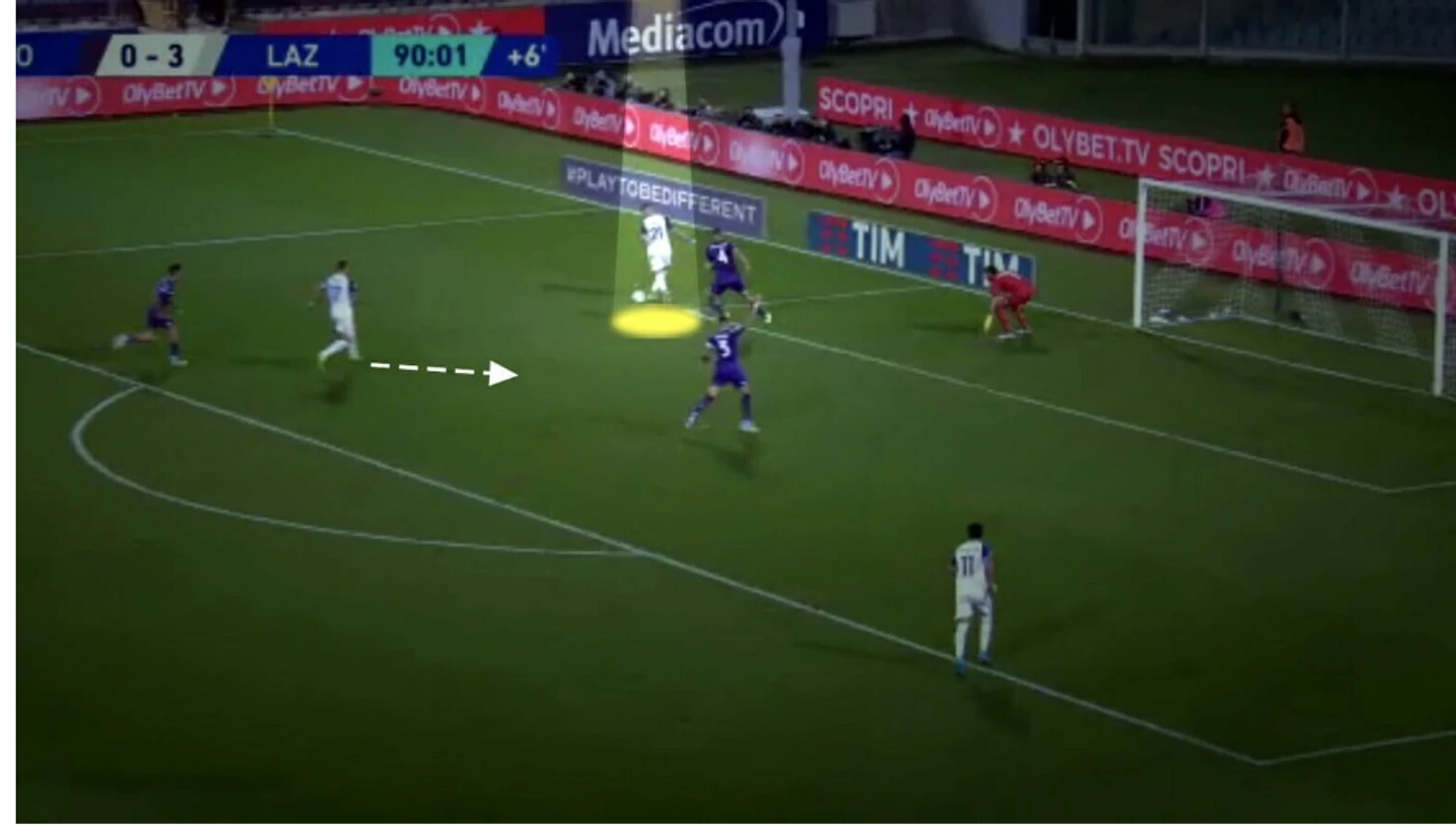 Когда Иммобиле уже собирается выполнить передачу в его сторону, Милинкович-Савич все еще жалуется и обращается к судье в связи с якобы фолом на Педро. Однако двумя касаниями после получения мяча ему удается вывести Иммобиле на ударную позицию перед воротами.