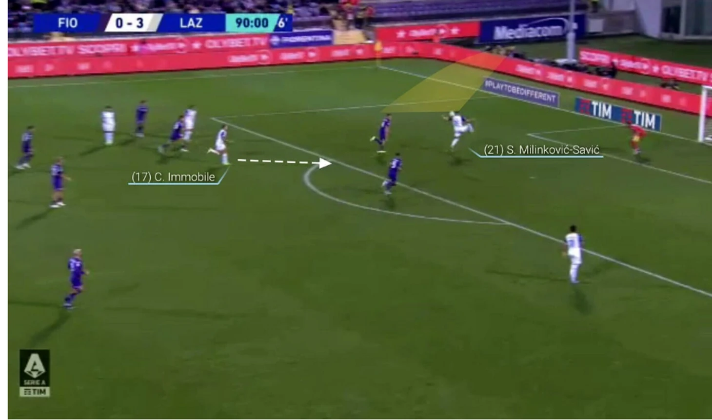 Почти незаметное движение Иммобиле также имеет решающее значение, поскольку он отдаляется от защитника ровно настолько, сколько необходимо, чтобы позволить мячу Милинковича-Савича дойти до него.