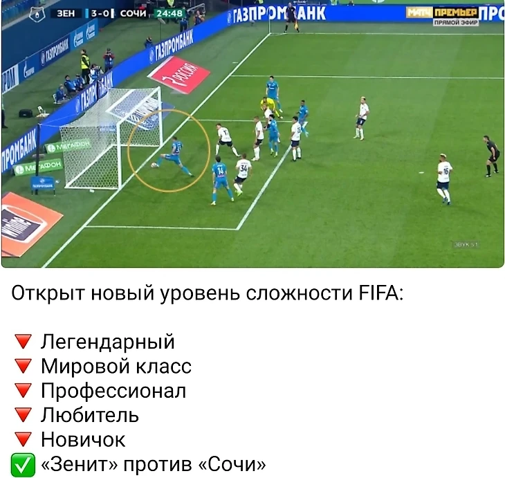 Матч, на мой взгляд, был центральным в туре. Ожидания от игры были соответствующие. Однако, игра закончилась уже на 2 минуте матча. Для «Зенита» матч сложился очень легко. Телеграм канал «Матч Премьер» опубликовал пост, в котором предложил ввести новый уровень сложности в FIFA: