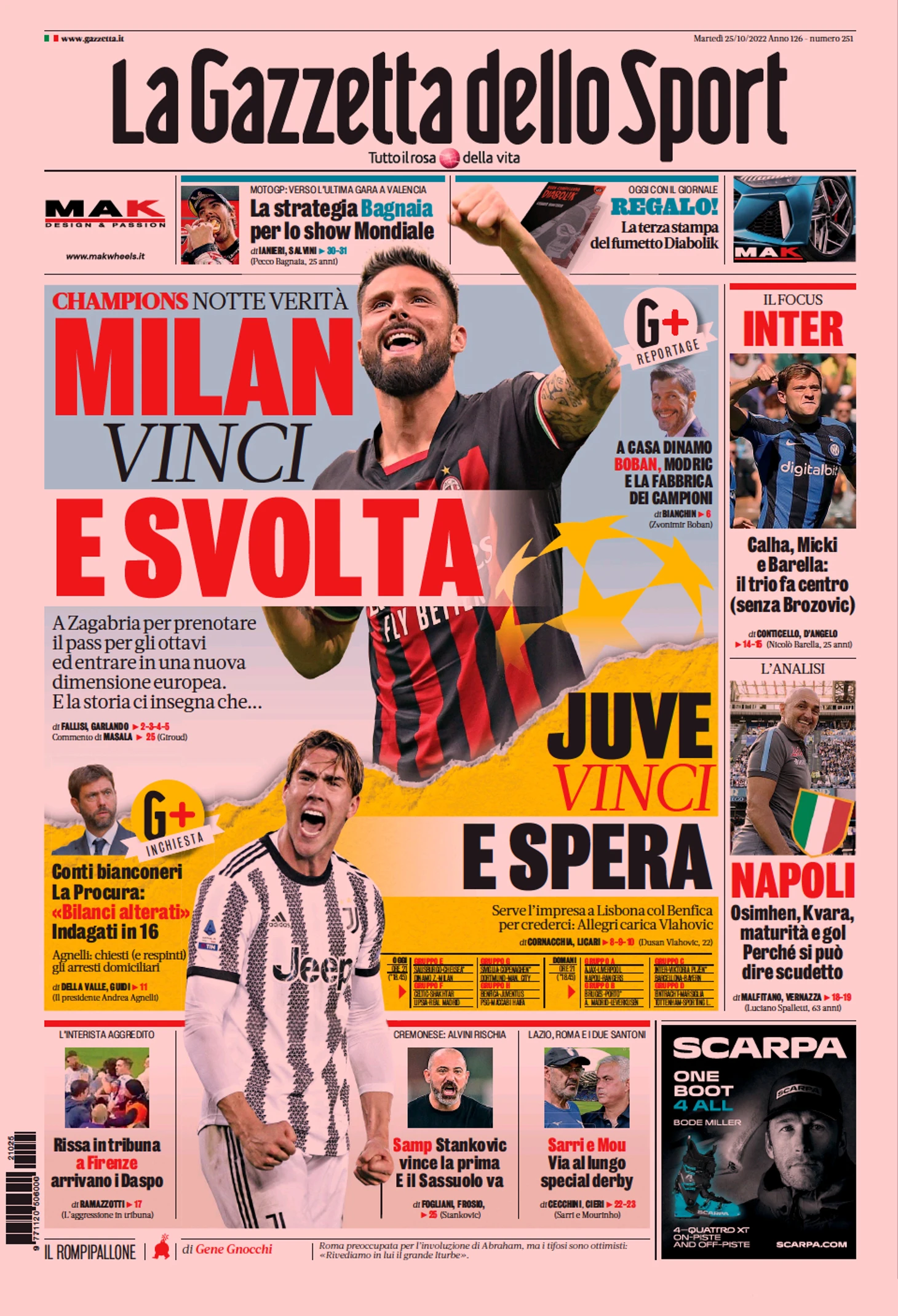 «Милан», выиграй и измени. Заголовки Gazzetta, TuttoSport и Corriere за 25 октября