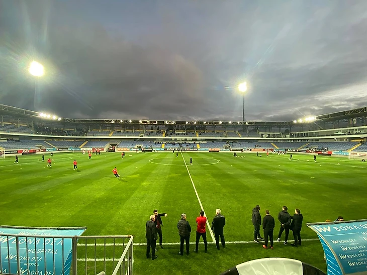 После официального построения случилась первая неожиданность для неготового зрителя: обе команды отправились поприветствовать своих фанатов. Признаюсь, это застало врасплох, ведь в России даже победив команды спешат скорее скрыться в раздевалке. Максимум – отпраздновать с партнёрами по команды вдали от болельщиков.