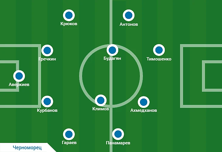 Позицию центрального инсайда занял Юрий Будагян. Одним словом, золотой актив новороссийской команды. Будагян имеет все качества для того, чтобы в ближайшей перспективе дорасти до РПЛ: скорость принятия решений, нестандартное мышление, техническая оснащенность, поставленный удар, доверие тренера – остается пожелать ему только удачи.