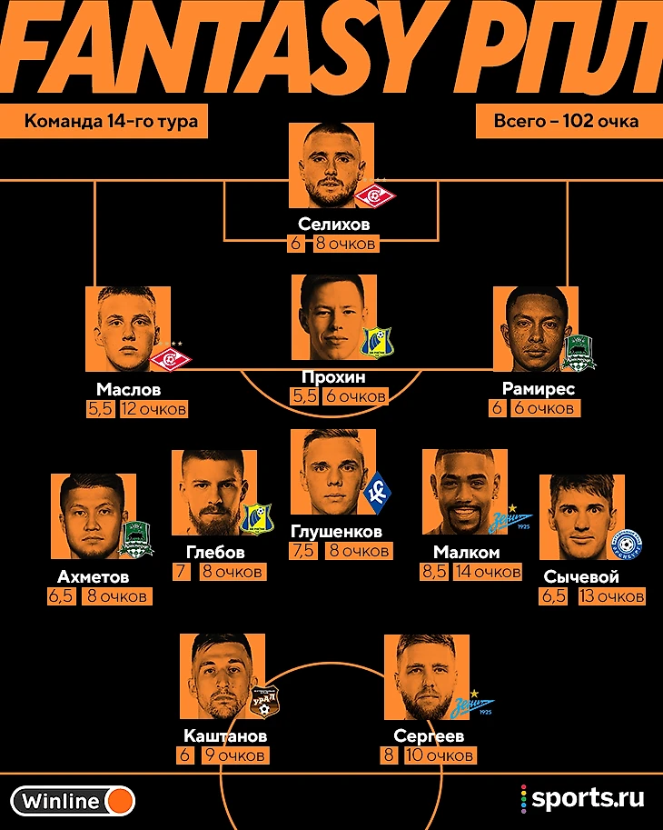 😍 Сычевой прописался, Малком лидирует в РПЛ, нашелся новый внезапный герой – все в Fantasy-сборной 14-го тура