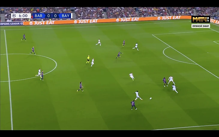 Первый тайм четко показал уязвимость в обороне Барселоны и визуально, и статистически. Из 6 ударов Баварии все были нанесены из пределов штрафной. При этом мюнхенцы полностью нейтрализовали действия каталонцев в атаке - всего 1 удар, и тот со штрафного.