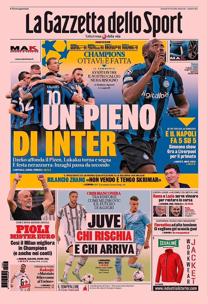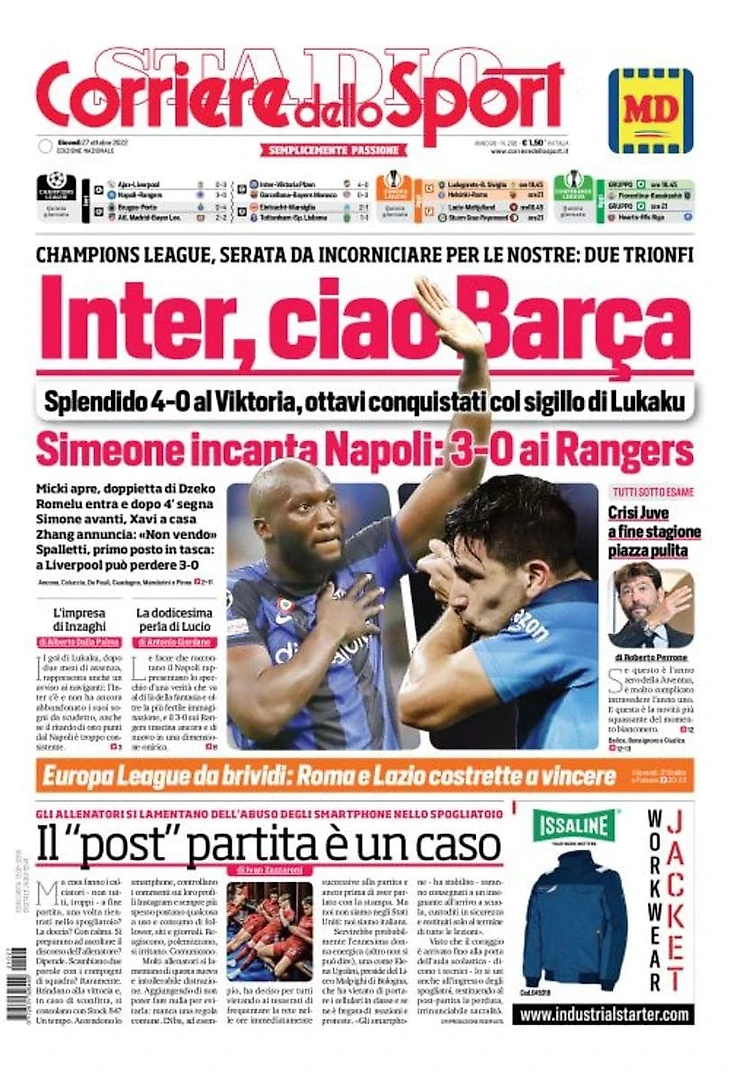 Полнота «Интера». Заголовки Gazzetta, TuttoSport и Corriere за 27 октября