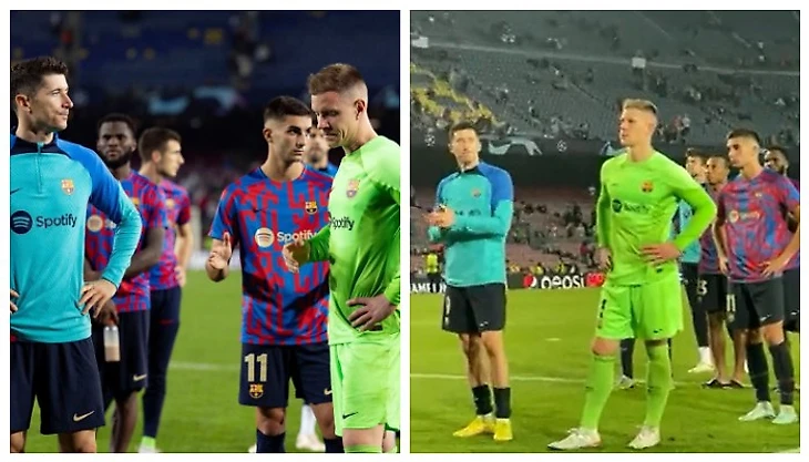 Алекс Бальде, Педри, Левандовски, Эрик Гарсия, Маркос Алонсо и Марк-Андре тер Стеген задержались на поле после матча и первыми попросили прощения у болельщиков, позже подошли и остальные игроки.