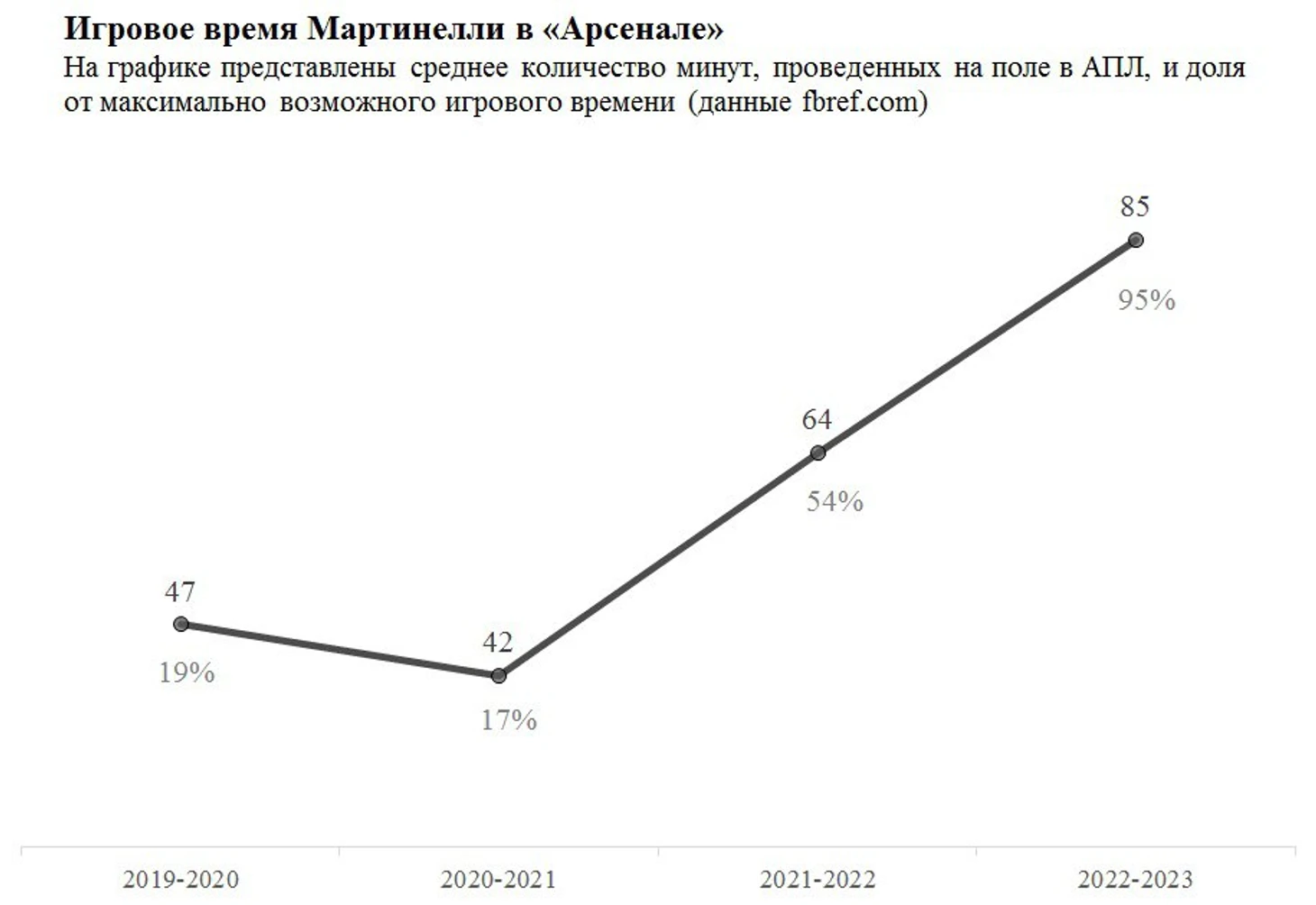 Закончим цитатой самого футболиста. «Думаю, это мой лучший сезон в «Арсенале» – заявил Мартинелли после матча с «Ливерпулем». И я так думаю.