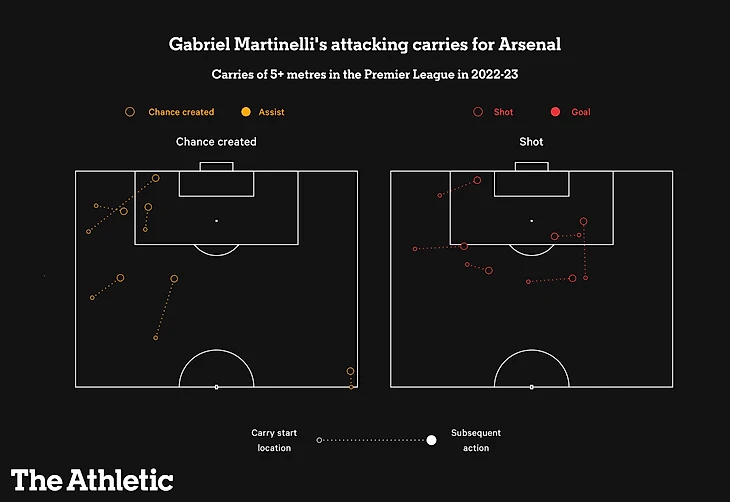Мартинелли также является лучшим в коллективе Артеты по SCA (приведшим к ударам действиям), имея 46 таковых (+30% в сравнении со средним показателем по прошлому сезону).