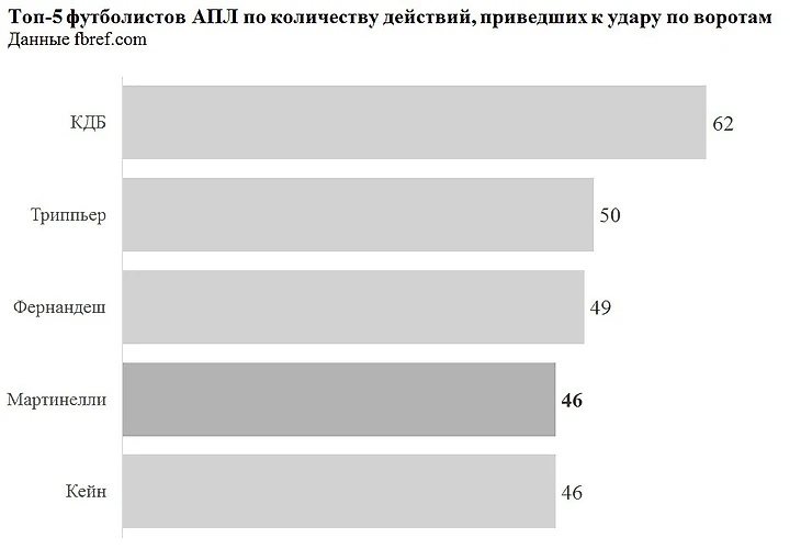Цифры Мартинелли выглядят достойно и на фоне АПЛ. Габи входит в пятерку самых вовлеченных в атаки своей команды футболистов.
