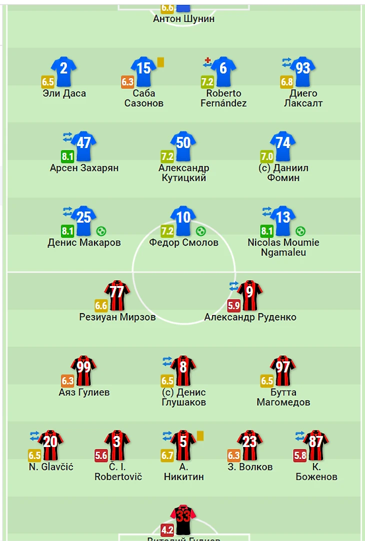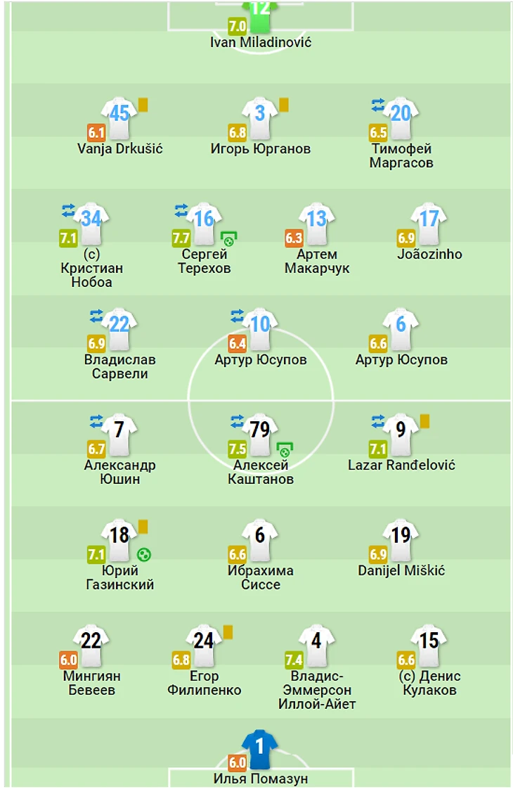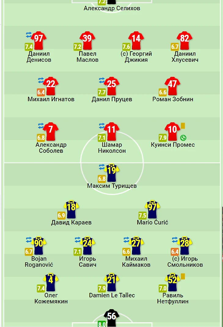 3) Матвей Сафонов 6,8........................................................................Далер Кузяев 7,4